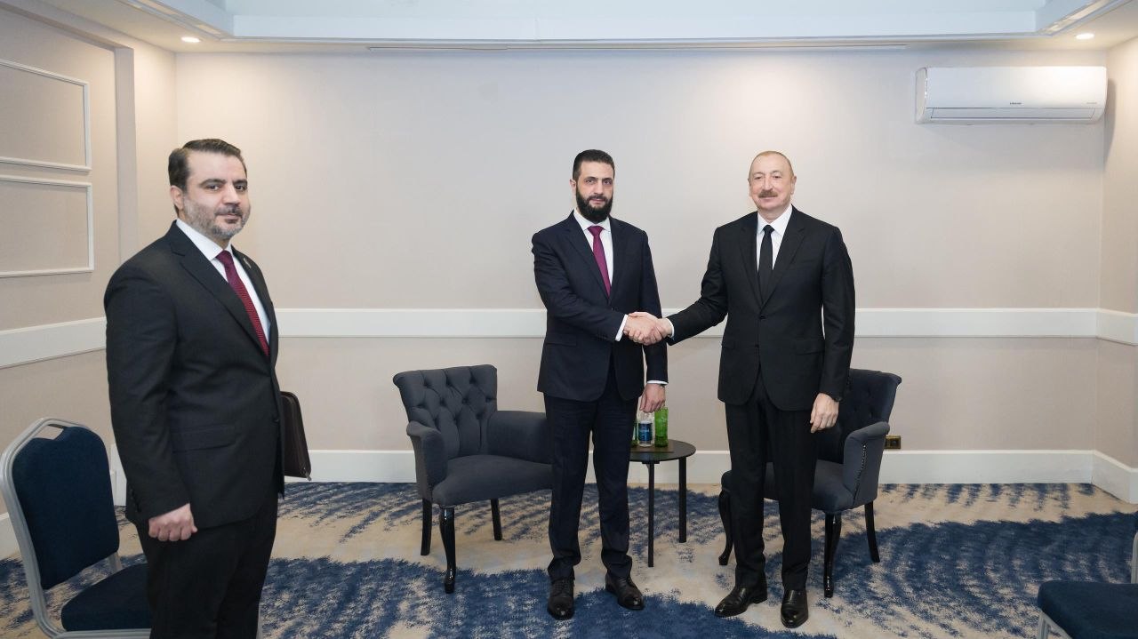 - الصفحة الرئيسية/الأخبار/فخامة رئيس الجمهورية العربية السورية السيد أحمد الشرع ووزير الخارجية والمغتربين السيد أسعد حسن الشيباني ورئيس جهاز الاستخبارات السيد حسين السلامة، يلتقون رئيس جمهورية أذربيجان السيد إلهام علييف