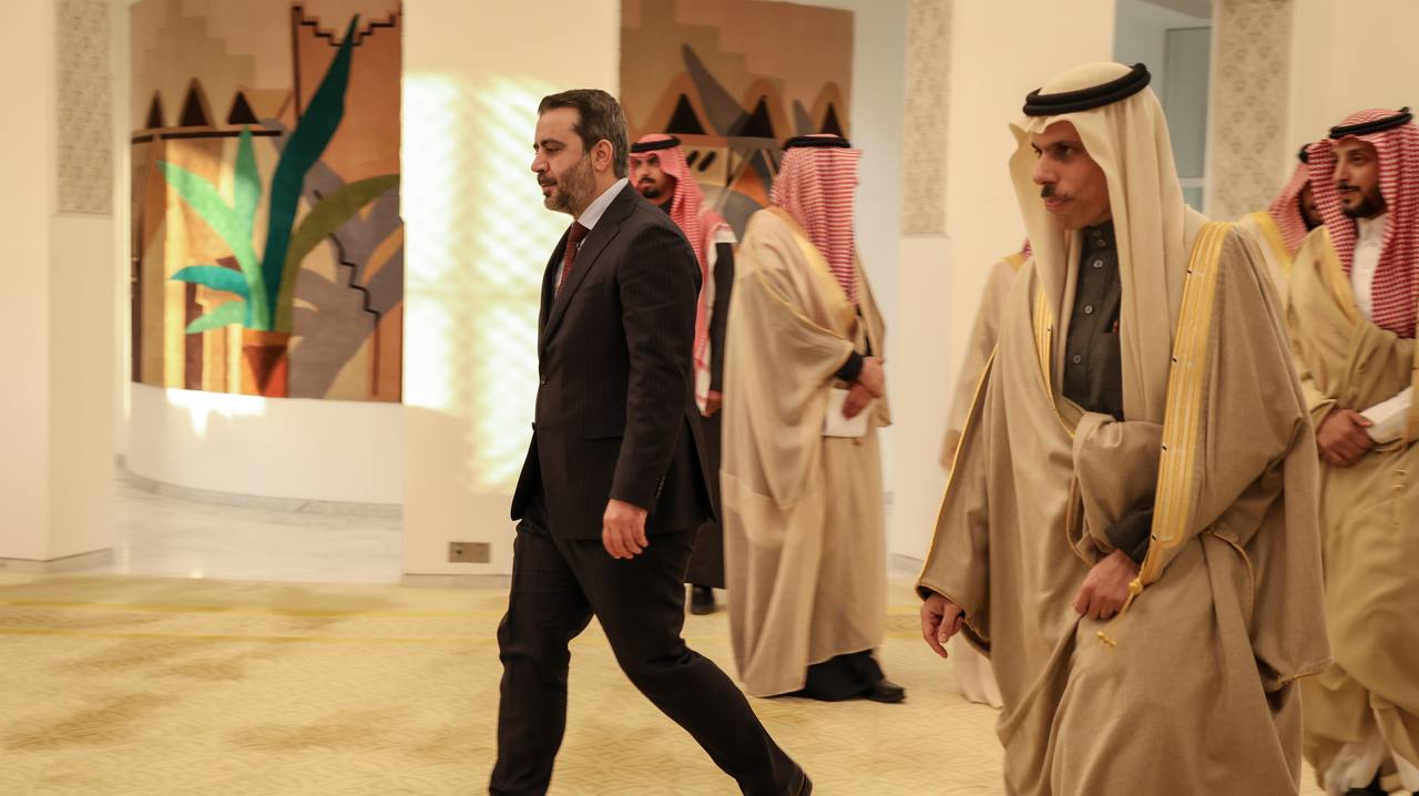 معالي وزير الخارجية السيد أسعد الشيباني يلتقي بسمو الأمير فيصل بن فرحان وزير خارجية المملكة العربية السعودية في العاصمة الرياض.